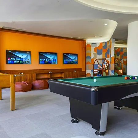 | Sportactiviteiten Aquapark Waterglijbanen Tennisveld Boogschieten Windsurfen Duiken Snorkelen Kanoën Biljart/ Pool tafels Darts Mini-golf Tafeltennis | Spa en ontspanning Spa en wellnesscentrum Solarium Turks stoombad Massage Lichaamsscrub Gezichtsbehandelingen Jacuzzi Manicure Pedicure | Eten op locatie Restaurant Snackbar aan het zwembad |